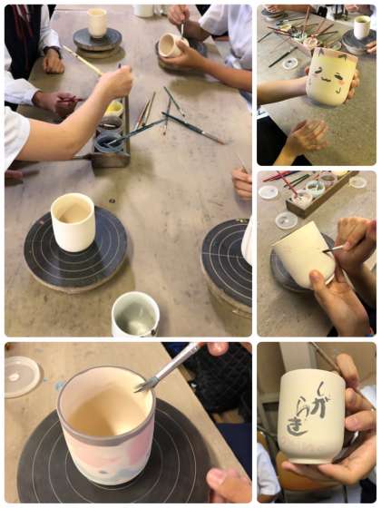 それぞれ思い出に残る湯呑みを作りました。約1ヶ月後に学校に届くそうです。