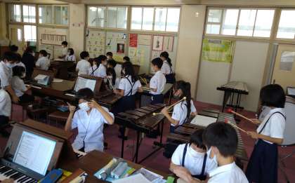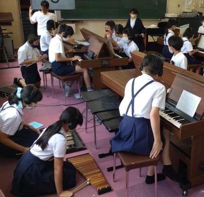 林間を通して仲間の絆が深まった5年生は、音楽の授業でアンサンブルに取り組みました。