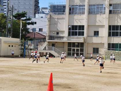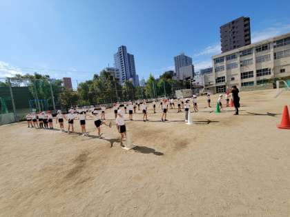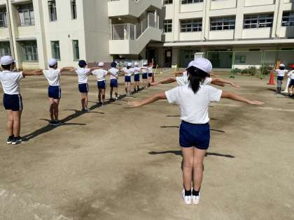 理科では「かげと太陽」について学習しています。かげがどこにできるのかを考えるために、実際に運動場に出てお友達とかげをつないだり、かげふみ遊びをしたりしました。