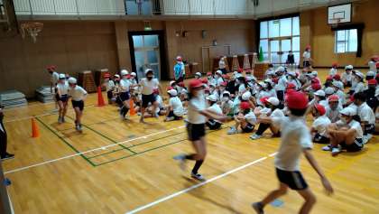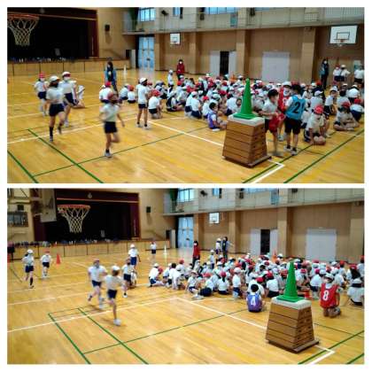 チームでの練習も大詰めを迎え、今回は体育館で「コーナートップ」の練習をしました。第3コーナーでの走る様子を見て、バトンパスを受け取る位置の内か外かが変わります。あの日本代表みたいにスムーズな受け渡しができるのでしょうか‥‥あとは精一杯がんばりましょう!!