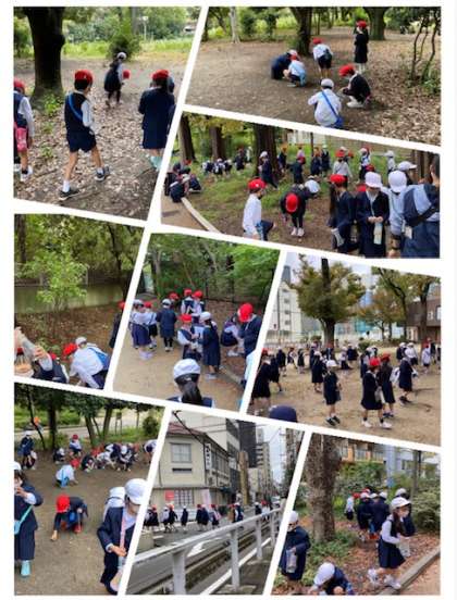 生活科の授業で靭公園まで「あきみつけ」をしに行きました。どんぐりやマツボックリ、落ち葉など拾って帰り、たくさんの秋を見つけることができました。