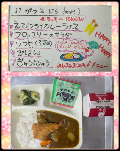 『えびフライカレーライス』は、牛肉を主材としたカレーライスに、えびフライを添えます。