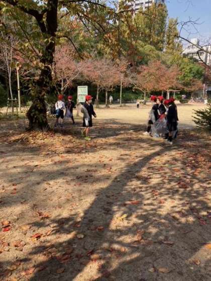 15日月曜日と16日火曜日に、2年生は生活科の学習で、靭公園へ行きました。どんぐりを拾ったり、赤や黄色に変わった落ち葉を拾ったりしました。靭公園のバラもきれいでしたね。どんぐりや落ち葉は何に変身するのかなぁ?