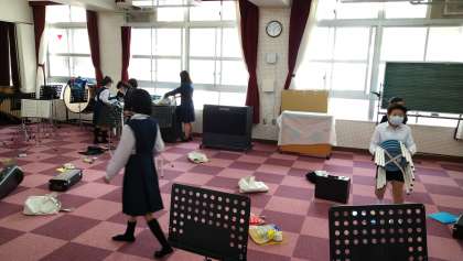 6年生がいない分、少し淋しい気もしましたが自主的に奏でていました。あいさつや後片付けもきちんとでき、次の演奏会に向けて楽しみながら取り組んでいます♪