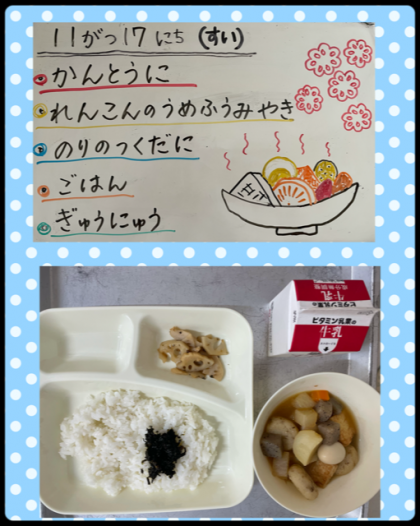 『関東煮』は、鶏肉、うずら卵、ごぼう平天、じゃがいも、こんにゃく、あつあげ、だいこん、にんじんを使用しています。【うずら卵】の個別対応献立となっています。
