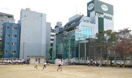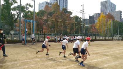 クラスごと順番に、50m走にチャレンジしました。また待っている間には、のぼり棒や鉄棒、うんていやタイヤ跳びもしました。