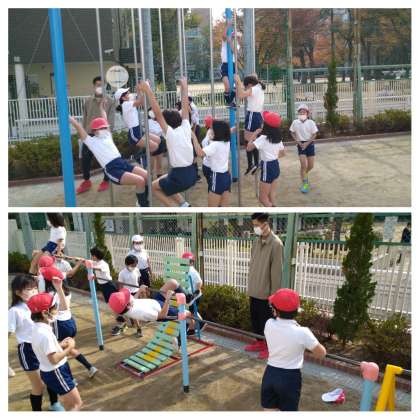 「う〜、3年生の頃にはできてたのにー」と嘆いている子もいれば、コツがつかめたようで「連続してできた!」と喜んでいる子もいました。安全に気をつけながら取り組んでいます。
