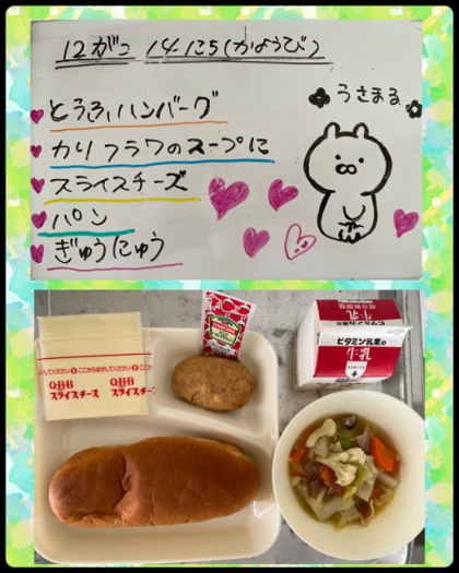『とうふハンバーグ』は、ツナ、とうふ、粗みじんに切ったたまねぎ、調味料などを混ぜ合わせ、1人1個ずつまとめ、焼き物機で焼きます。