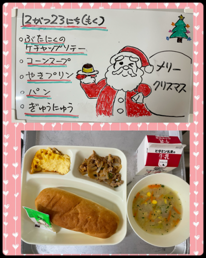 『コーンスープ』は、コーンとスイートコーン(クリーム缶)のほか、鶏肉やはくさい、にんじん、青みにパセリをしようしています。