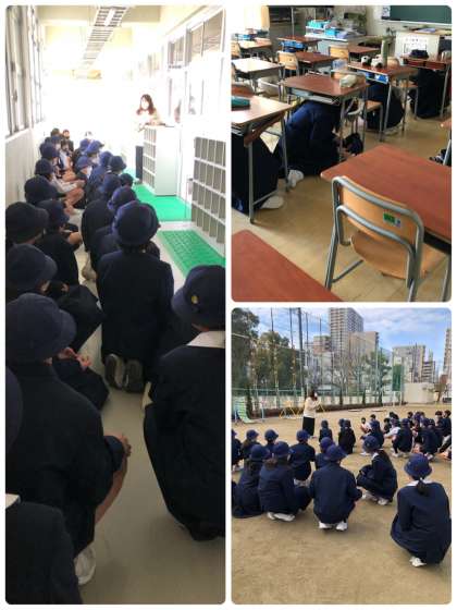 地震が起きた後、津波の危険があるという想定で避難訓練をしました。