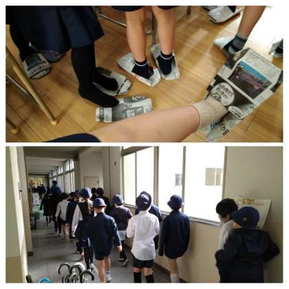 学年に応じて動画を見たり、地震や災害に対してさまざまな取り組みをしたりしました。