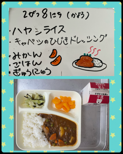 『ハヤシライス』は、子ども達に大変人気のある献立のひとつです。牛肉を主材に、小麦粉と綿実油で作る手作りのブラウンルゥ、デミグラスソースなどを加え、煮こんで仕上げています。