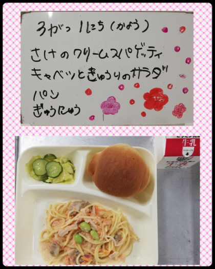 『さけのクリームスパゲティ』は、紅ざけ(フレーク)を使用し、春らしい淡いピンクに仕上げます。ホワイトルゥは、バターを使用せず、クリームとチキンブイヨンで旨みを加えています。