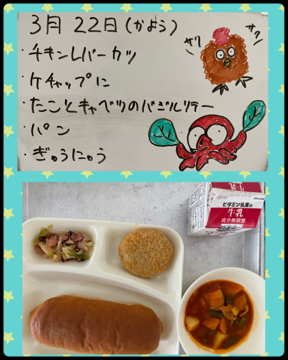 『チキンレバーカツ』は、ほんのりカレー味がついて食べやすくなっています。不足しがちな鉄をとることができます。児童に人気のある献立です。