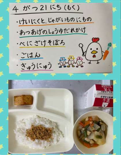 『あつあげのしょうゆだれかけ』は、焼き物機で焼いたあつあげに、砂糖、みりん、こいくちしょうゆで作ったタレをかけています。
