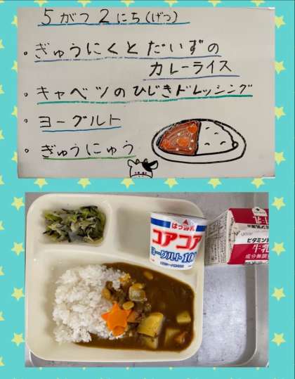『牛肉と大豆のカレーライス』は、大豆が苦手な児童も食べやすくドライパックの大豆を使用しています。