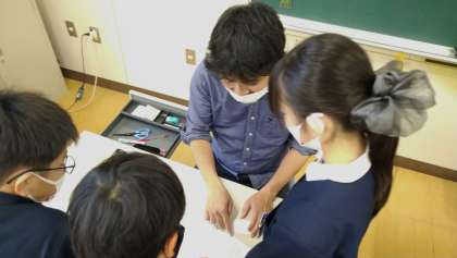 描き始めたときには面白おかしいような笑い声もありましたが、しばらくするとシーンと集中する雰囲気となりました。みんな一生懸命に鉛筆を走らせています。何度も先生に「これでいいですか?」「どう描いたらいいですか?」と、主体的に聞いてくる子もいました。