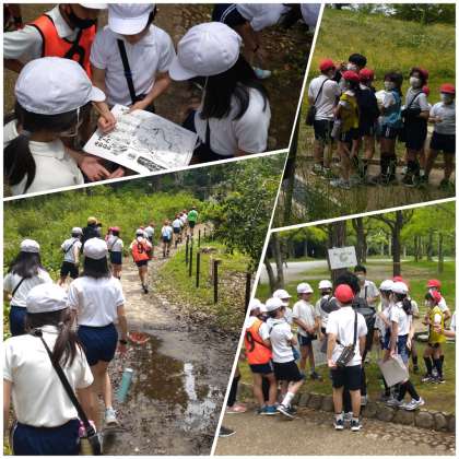 各チェックポイントにいる先生のお題に答えたり、散策しながら「かわせみコース」を辿ってクイズに答えたりしながら、グループで進んでいきます。