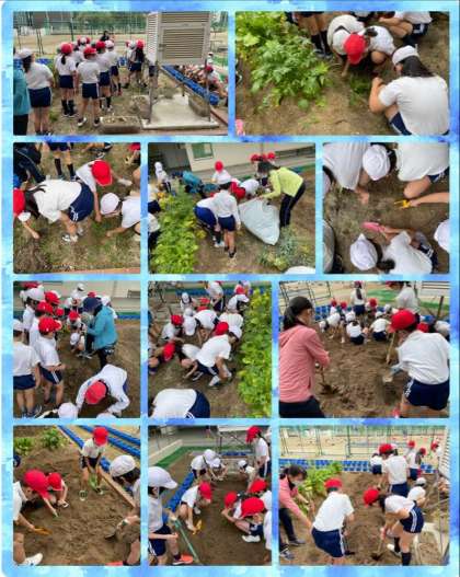 その前に、学習園の雑草をとり、耕し、うねを作る作業をしました。