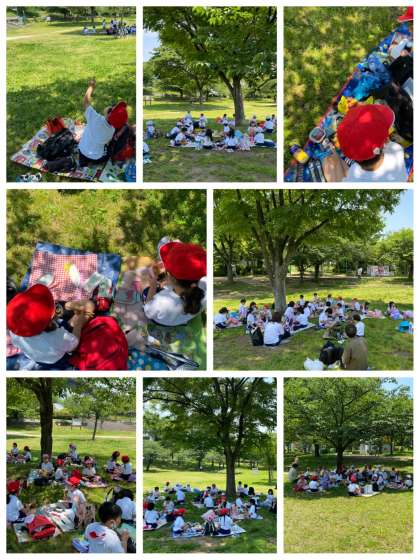 いっぱい遊んだ後は、お弁当の時間です。いつもとはちがう場所で友達と一緒に食べるお弁当。「おいしい!」「たのしいね!」と楽しいお弁当の時間になったようです。