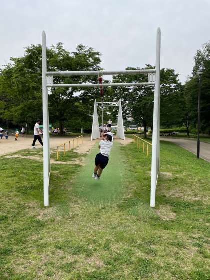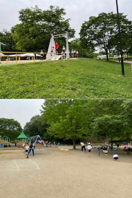 広い公園にたくさんの遊具。