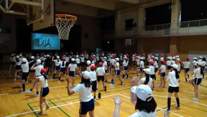 はじめは講堂で、団体演技の振り付けを見て学び、ダンスリーダーも中心となって練習に励んできました。