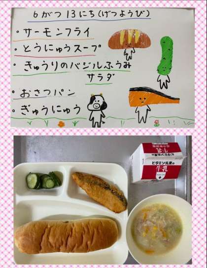 『豆乳スープ』は、ベーコンでうまみを出し、じゃがいも、たまねぎ、コーン、にんじん、むきえだまめを使用した、豆乳のまろやかさをいかしたスープです。