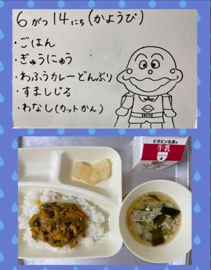 『和風カレー丼』は、だしこんぶとけずりぶしのだしの風味をきかせた和風のカレーをかけて食べる子ども達に大人気の献立です。
