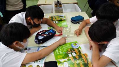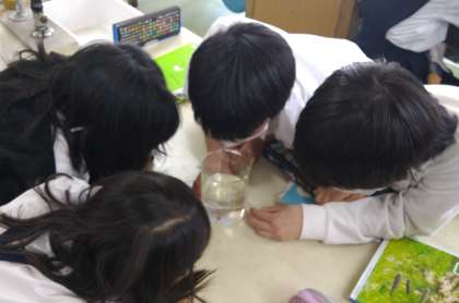 小さなちいさなメダカが水槽の中をスイスーイと泳ぎ、そのオス・メスの違いをこの目で・・・見比べるのはなかなか至難の業ですが、みんなは目を凝らして観察しています。