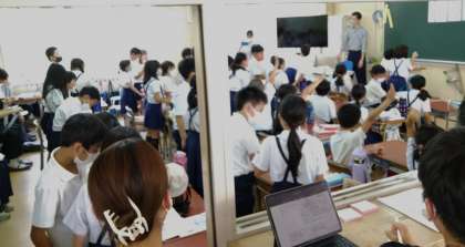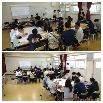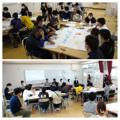 良かった点や改善点などをグループワーク形式で話し合い、みんなで考え合って模造紙にまとめ、最後には発表をして共有しました。教育委員会からも講師先生を招き、有意義な時間となりました。
