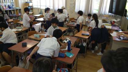 2週間後に控えた林間に向けて、普段から活動をしています。4〜5人の活動班に分かれて、話し合うこともしばしばしています。