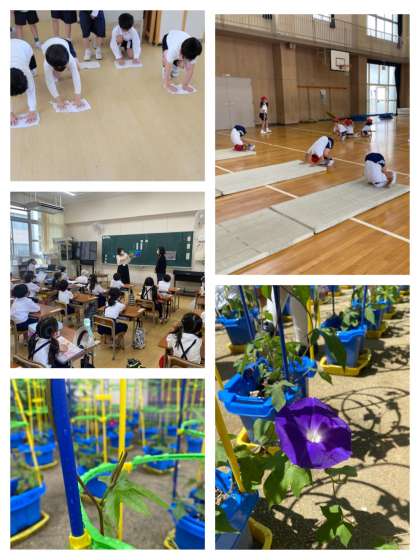 体育では、水泳とマット運動をしています。水泳では、水を怖がっていましたが、慣れるととても楽しそうに活動していました。