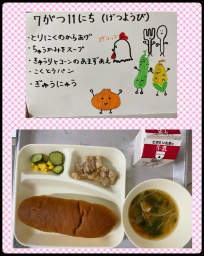 『鶏肉のからあげ』は鶏肉に、しょうが汁、ニンニクなどで下味をつけでんぷんをまんぶしてカラッと揚げています。