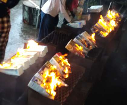 牛乳パックのなかに入れて、点火!