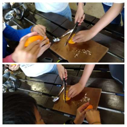 みかんを小さく細かくし、特製の容器に入れて冷やします。