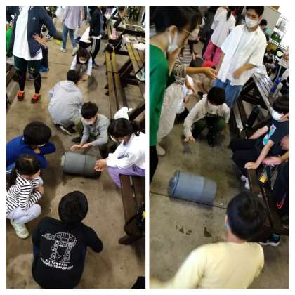 氷を敷き詰め、そこに塩を足して温度を下げて約20分間転がし続けます。