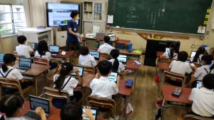 また、一人1台端末のパソコンを使いながら、生活科ではザリガニを検索したり、図工の時間に絵を描いたりとさまざまな学習をしています。
