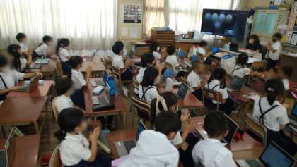また、Teamsを利用したオンライン学習にも取り組んでいます。来る情報化社会やパソコン機器の活用も見据え、子どもたちが実際にタブレット(一人1台端末)をさわり、Teamsに入る練習もしました。