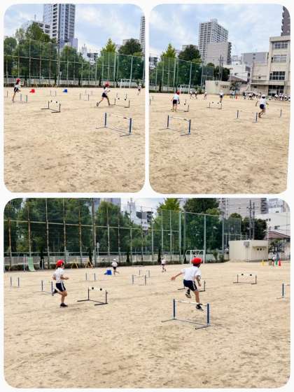 天気の良い日が続いた今週、体育の学習でハンドボールやハードル走をしました。