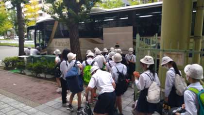 出発式を終えて、子どもたちを乗せたバスが信楽陶芸村へと出発しました!