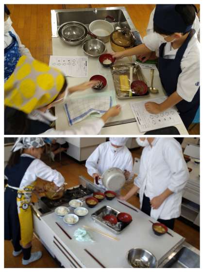 今週は、調理実習ウィークです。昨日は2組が、今日は3組、明日に1組がそれぞれ行います。今回のメニューは・・・「ご飯」と「みそ汁」です!