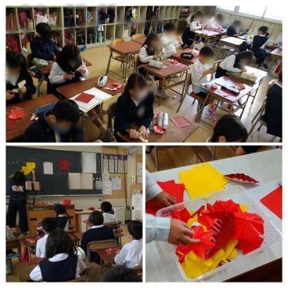 また、教室に飾っていた「色はんが」も同じく鑑賞しました。がんばりや良さを見つけるのも学習ですね。そして来月の懇談会の時期には、講堂で『作品展』が行われます。2年生は・・・どんなものを描いたのでしょう♪
