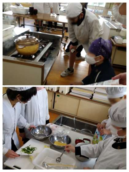 途中、お米を水に浸してコンロの火にかけ、少し時間が経つと中から溢れんばかりの泡と水蒸気で、みんな焦っていました。ふだん家でも何気なく食べている(作っている)ことに感謝ですね。