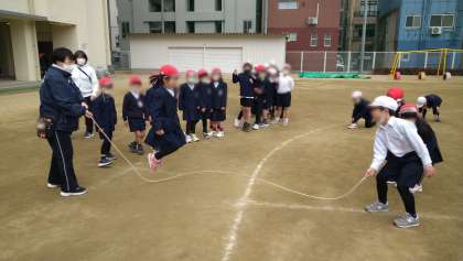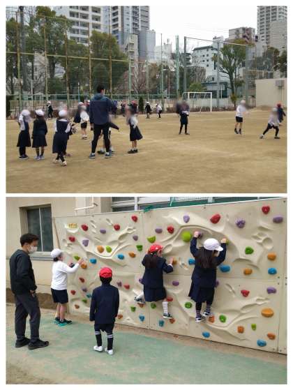 みんなで大なわ跳びをしたり、ウォールクライミングをしたりと、楽しそうにしています。今のクラスの友だちと一緒に過ごすのも、あと1ヶ月となりました。