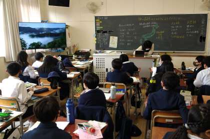森林や環境問題について学んでいます。映像やグラフを見たり読み取ったり、自分たちで調べたりしながら深く考えています。