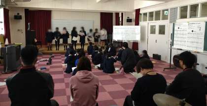 2つの冬の曲を鑑賞し、その音色やリズム・強弱などの違いを感じ取り、グループで話し合ったことを意識しながら歌っていきました。