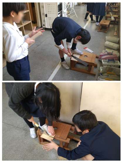 4年生 図工 のこぎりを使って