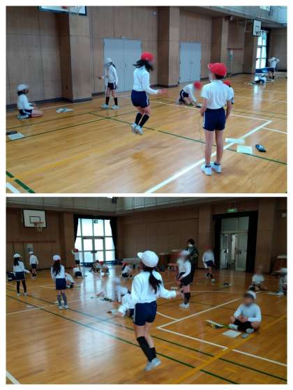 ペアになって、跳んでる回数を数えたり、技の教え合いをしたり、友だちのいいところを発見したりもしました。体育の時には「あの曲」のリズムに合わせて、“前跳び”や“ケンケン跳び”もしましたね。
