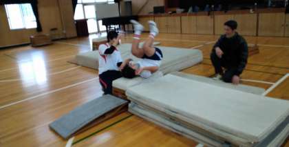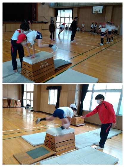少し前になりますが、西区の支援事業として体育のインストラクターさんが来られて、マットやとび箱について教わりました。
