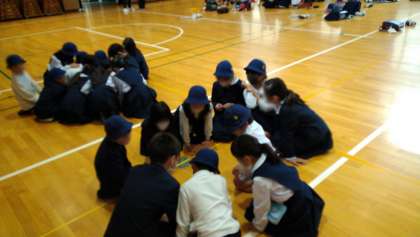 この日は「分団集会」を行い、日ごろの集団登校での様子をふり返ったり、話し合ったりして、団結を深めていく取り組みをしました。